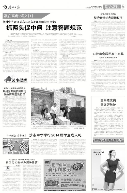 《荆州日报》5月13日报道我校成人礼