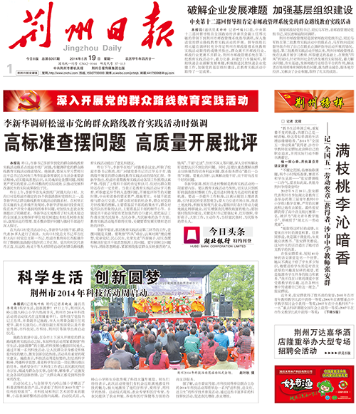 《荆州日报》5月19日报道我校全国五一劳动奖章获得者张安群