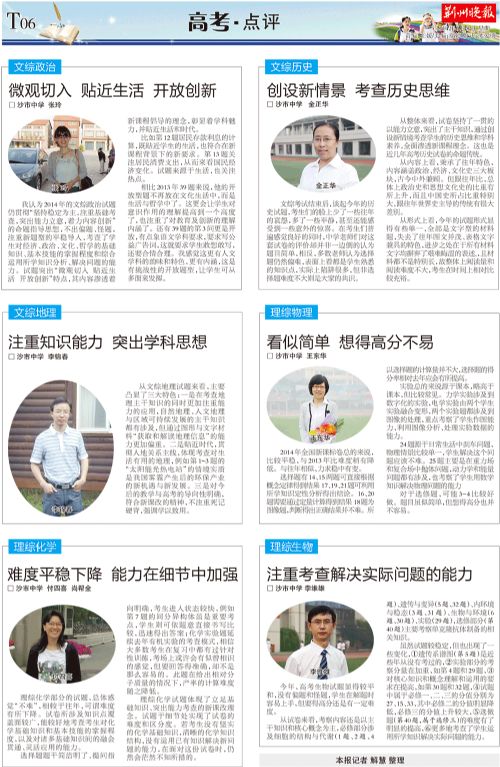 《荆州晚报》6月9日专版刊登我校教师点评高考试卷