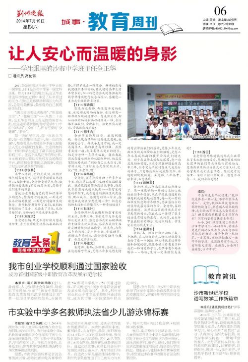 《荆州晚报》7月19日刊登《学生眼中的全正华老师》