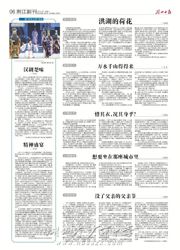 《荆州日报》2017年6月20日刊登我校学生观看《优孟衣冠》之感想