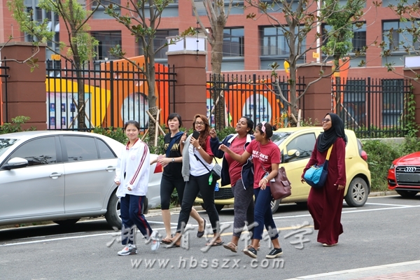 文化教育交流活动后,在我校志愿者的带领下,来访的新加坡师生代表分成8个小组,参观了美丽的沙市中学新校园。志愿者详细介绍了各个建筑物的功能,介绍了沙市中学的历史和办学业绩。