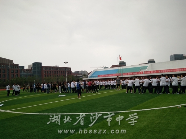 4:30,全体访问团师生代表来到了学校操场。在体育组老师的精心安排下,我校高三年级的45名学生代表和新加坡学生代表开展了拔河友谊赛。