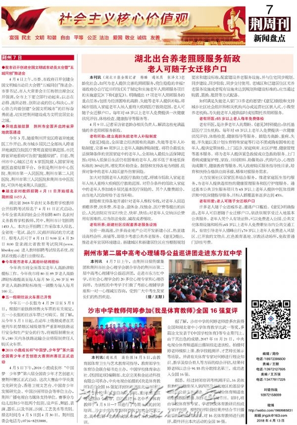 《荆周刊》2018年4月13日报道我校何婷老师参加央视《我是体育老师》全国16强复评