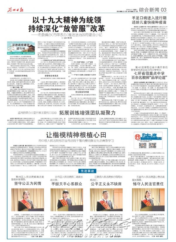 《荆州日报》2018年4月17日报道我校主办湘鄂边重点中学教学研讨活动