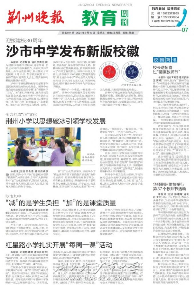 《荆州晚报》2021年9月17日报道我校发布新校徽
