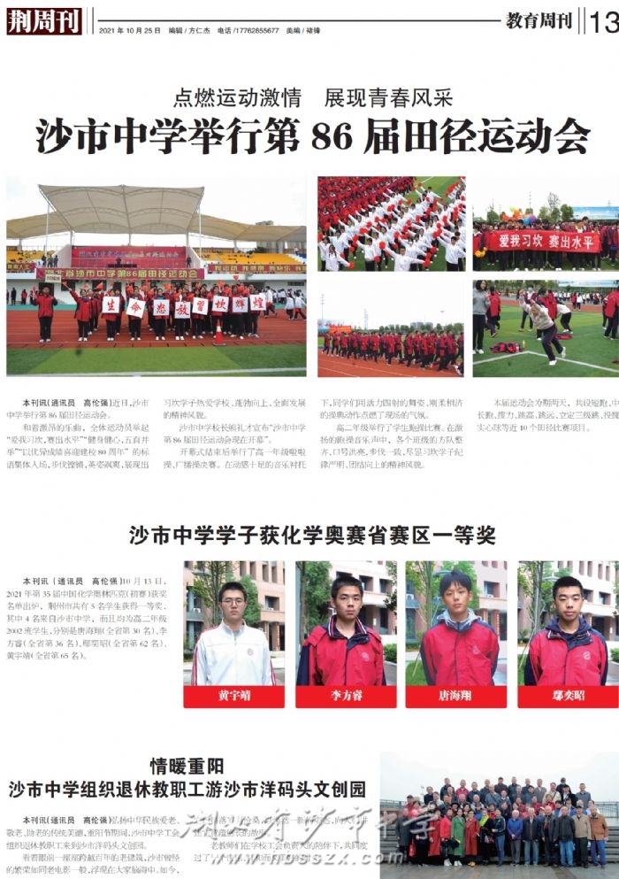 《荆周刊》2021年10月25日报道我校举办田径运动会、化学奥赛获奖、老教师活动等三事