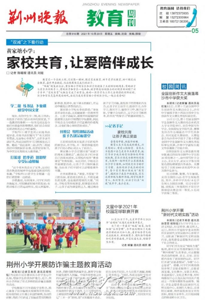 《荆州晚报》2021年10月29日报道我校在全国创新作文大赛中夺得大奖