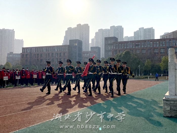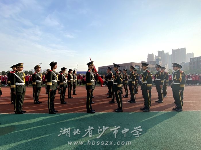 紧接着,新一届国旗班全体成员在班长张沈娟同学的带领下,面向国旗,庄严宣誓:志愿加入国旗班,接受爱国主义教育,发扬国旗班精神,爱国爱校,爱护国旗,认真执行《国旗法》,拥护国旗班制度,遵守国旗班各项规定,做捍卫国旗的钢铁战士,以火红的青春,谱写国旗礼赞,用热忱生命,捍卫国旗尊严。