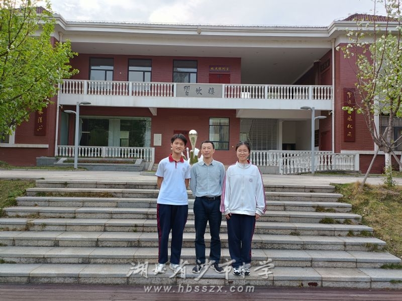 “英才计划”武汉大学生物学科学生2301班陈禹同、2303班徐晶莹与导师胡骏教授合影。