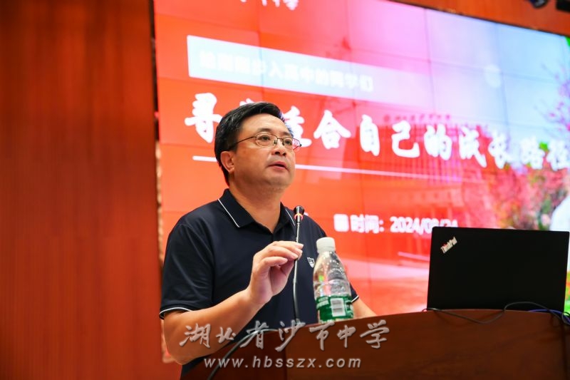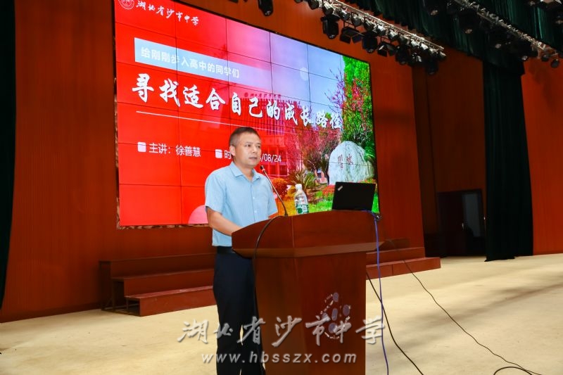 8月24日下午,沙市中学党委副书记、校长徐善慧以《寻找适合自己的成长路径》为题开启了2024级新生学法指导的第一场讲座。