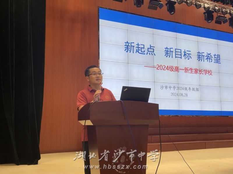 2024级年级主任王亚东以《新起点,新目标,新希望》为题,向家长们介绍了新高一年级的基本情况、高中学习生活的特点、年纪管理要求等。他呼吁家长要关注孩子的身心健康,引导孩子适应新环境,实现初中到高中的平稳过渡。