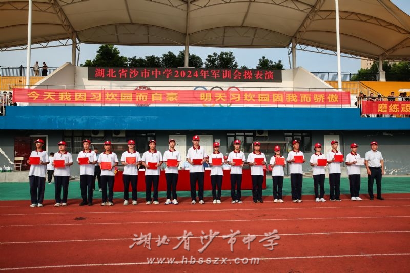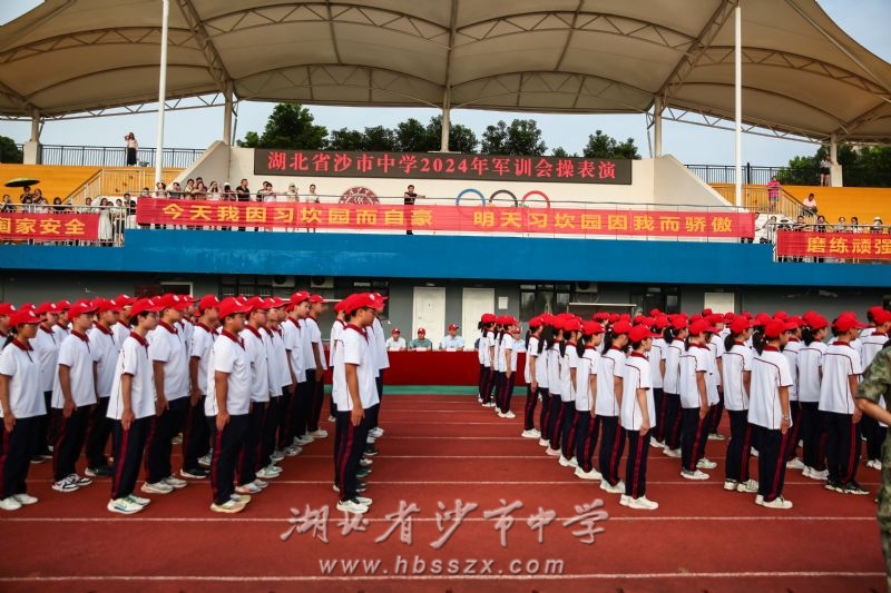 8月30日上午7点半,沙市中学2024年军训会操表演仪式在操场隆重举行。学校领导和家长代表出席了仪式。活动由学工处主任李昌坤主持,高一年级全体班主任、学生和教官参加了仪式。