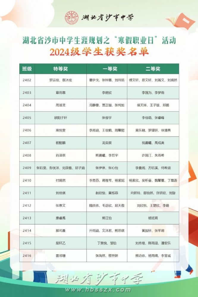新学期伊始,学校对各班提交的《寒假职业日手册》进行多维度评审。从“目标清晰度”、“实践深度”、“反思创新性”等角度打分,最终评选结果如下:
