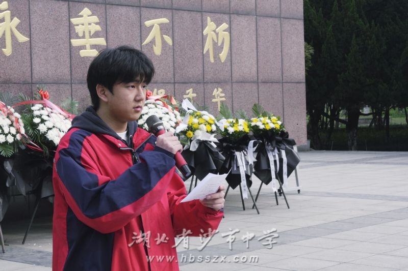 2310班李羽童作为学生代表发言,他呼吁习坎学子们继承先烈遗志,以先烈为榜样,把他们的勇气装进心里,把责任扛在肩上,从身边的小事做起,认真听好每一堂课,做好每一次志愿服务,关心国家大事,在实现中华民族伟大复兴的道路上,跑好属于青年这一棒的征程!