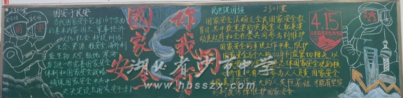 为深入贯彻落实习近平总书记关于总体国家安全观的重要论述,增强师生国家安全意识,筑牢校园安全防线,在第十个全民国家安全教育日来临之际,沙市中学组织开展了形式多样的国家安全教育系列活动,通过国旗下讲话、主题班会和黑板报创作等形式,增强师生国家安全意识,营造“国家安全,人人有责”的校园氛围。