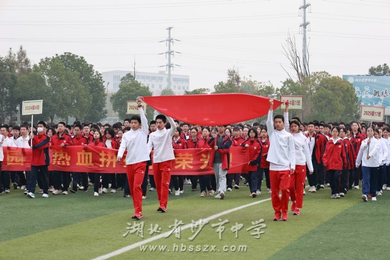 伴随着激昂的进行曲,国旗队步伐铿锵,各班同学迈着整齐的步伐如潮水班涌来,激情瞬间点燃运动场。