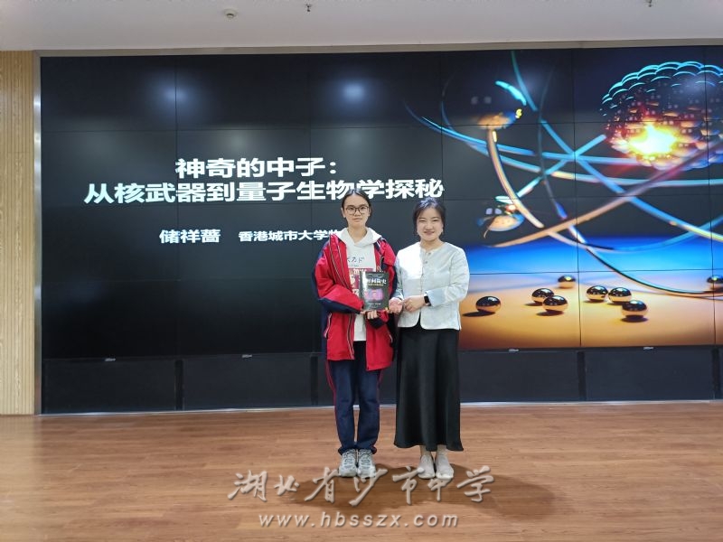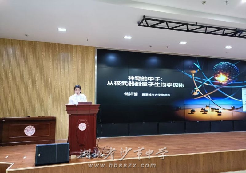 在综合楼二楼大会议室会场,九三学社长江大学支社委员、长大园艺园林学院副教授吴丽丽担任主持人。储祥蔷教授为高二年级学生带来了《神奇的中子:从核武器到量子生物学探秘》的专题讲座。储祥蔷教授从中子的基本特性出发,深入讲解了其在国防科技、前沿基础研究乃至量子生物学等交叉领域的广泛应用与巨大潜力,为同学们打开了一扇通往核物理与尖端交叉科学的大门,拓宽了学生的科学视野。