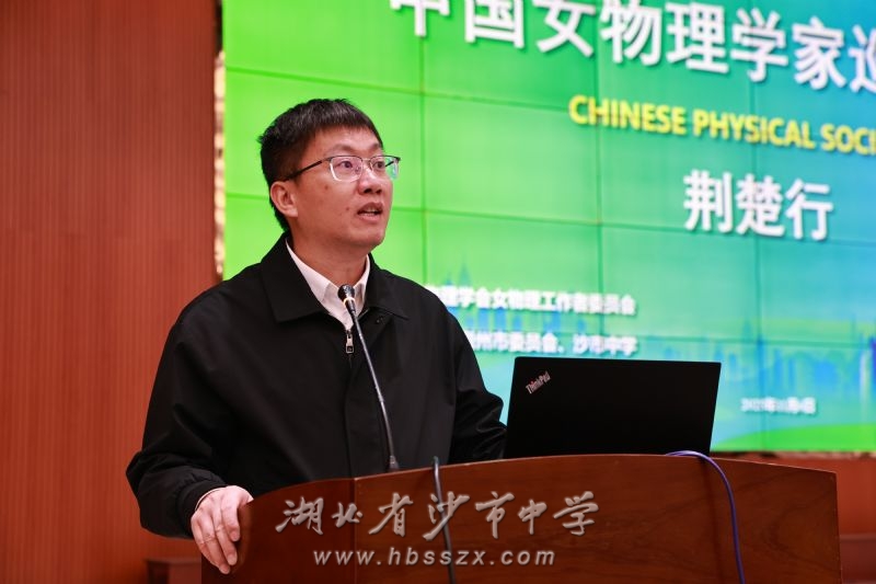 欢迎仪式在学校学术报告厅隆重举行,沙市中学党委委员、副校长潘磊主持。沙市中学党委副书记、校长徐善慧致欢迎辞,他对各位女物理学家的远道而来表示热烈欢迎,对中国物理学会女物理工作者委员会、九三学社荆州市委员会为习坎学子搭建接触科学前沿的平台表示衷心感谢,并鼓励同学们珍惜与科学家面对面交流的机会,保持好奇心与求知欲,在心中播下科学探索的种子。