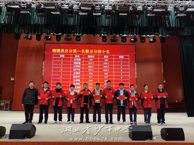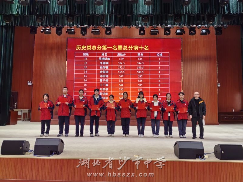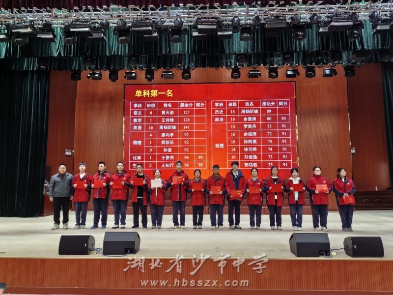 会上,总结表彰了期中考试物理类和历史类第一名暨总分前十名、单科第一名、行为规范之星、进步之星、总分优胜奖等同学。