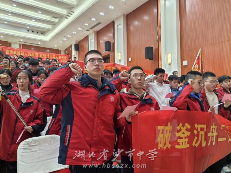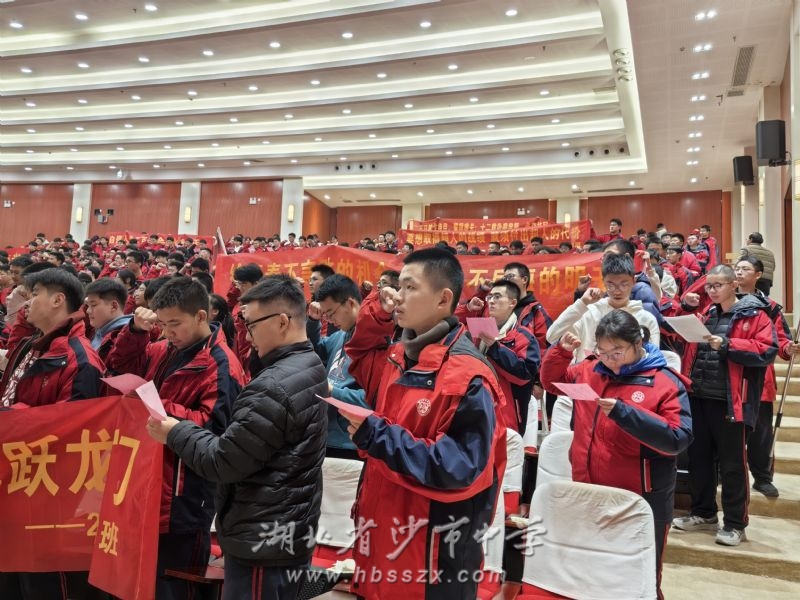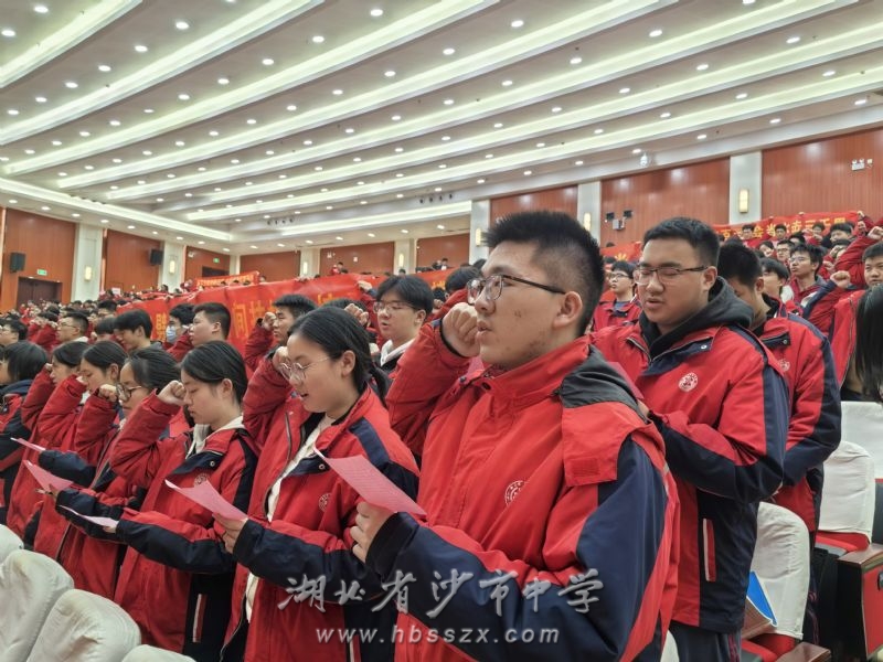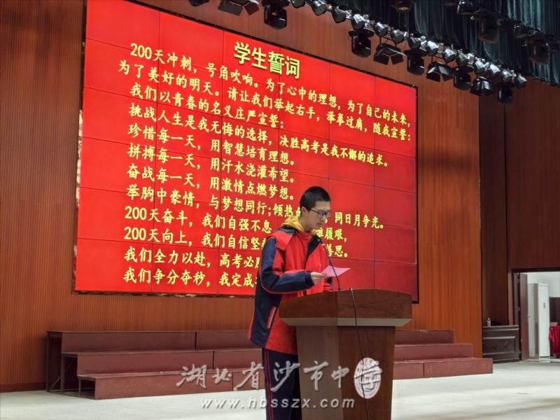 最后,高三(1)班蒋天元带领高三全体同学一同宣誓,此次表彰大会在同学们的铿锵誓言声中结束。200天,是梦想与实力的交汇,是同学与老师的并肩同行,是筑梦路上的关键时期,愿2023级全体高三学子以笔为剑,披荆斩棘,拨云见日,终成所愿!