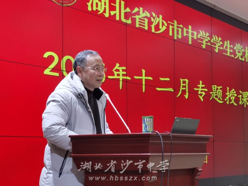 为深入推进青少年思想政治引领,筑牢理想信念根基,12月26日晚六点,沙市中学学生党校在综合楼二楼会议室开展了十二月专题学习活动,校党委委员、副校长赵文华出席活动并进行了授课。校团委副书记周敏主持活动,党章班及马培班全体学员均参加了学习。