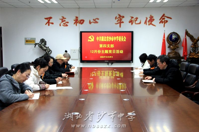 为深入学习贯彻党的二十届四中全会及省、市相关全会精神,12月29日,沙市中学组织开展“持续深入学习宣传贯彻党的二十届四中全会精神”主题党日活动。活动围绕专题学习与交流研讨两大环节展开。
