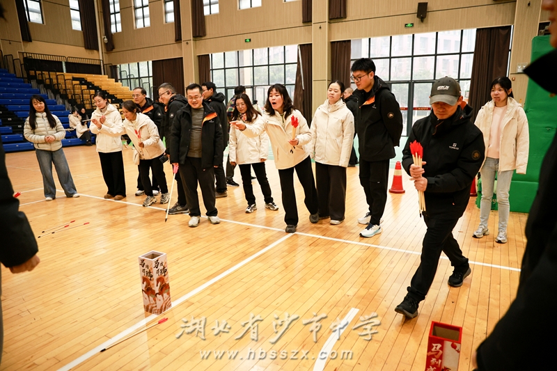 随后,趣味运动会正式展开。本次活动设置了“蒙眼走猫步”“投壶游戏”“一圈到底”“急速三子棋”等多项集趣味性、协作性与竞技性于一体的项目。老师们积极参与、全情投入,比赛中既有默契配合,也有欢声笑语,展现出沙市中学教职工昂扬向上、携手同行的精神风貌。
