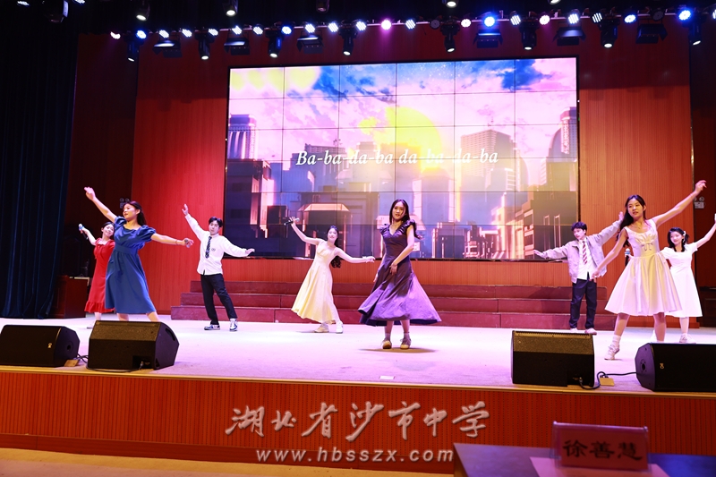 汇演分高一、高二两场接力进行,近四十个节目如一幅流动的青春长卷,徐徐展开。舞台上,既有致敬经典的音乐剧《爱乐之城》,也有融合现代审美的舞蹈《玉盘》《玫瑰人生》;既有诙谐反映校园生活的小品《反抄风暴》《卷王的一天》,也有深情磅礴的师生联唱《当你老了+阿刁+找自己》。民乐合奏《印象·魔童》奏出传统与创新的交响,电声乐队《Counting Stars》点燃全场的热情;舞台剧《永不消逝的电波》重温信仰的力量,《历史课上的时空偏差》则以奇思妙想连接古今。