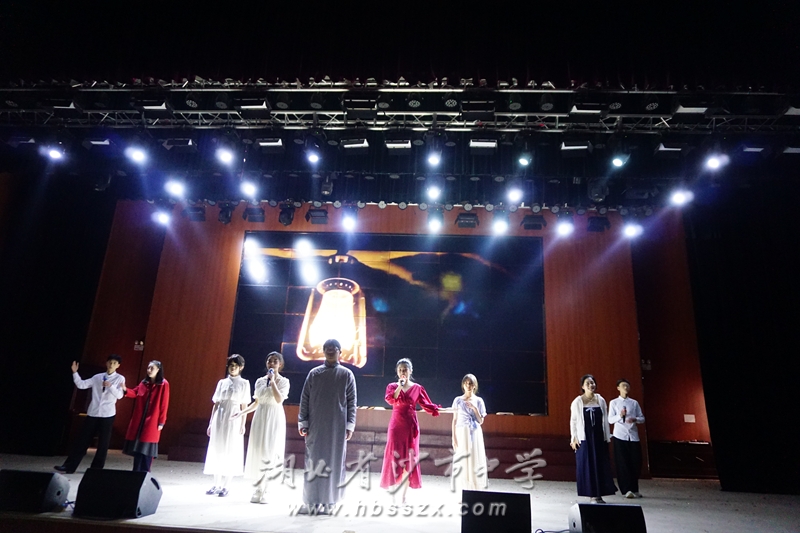 尤为动人的是师生同台、其乐融融的场面。教师舞蹈《剑影扇风象王行》刚柔并济,展现讲台之外的别样风采;朗诵《灯火里的青春》则由主持人共述信仰的力量。台上激情飞扬,台下掌声如潮,报告厅化作一片欢乐与感动的海洋。