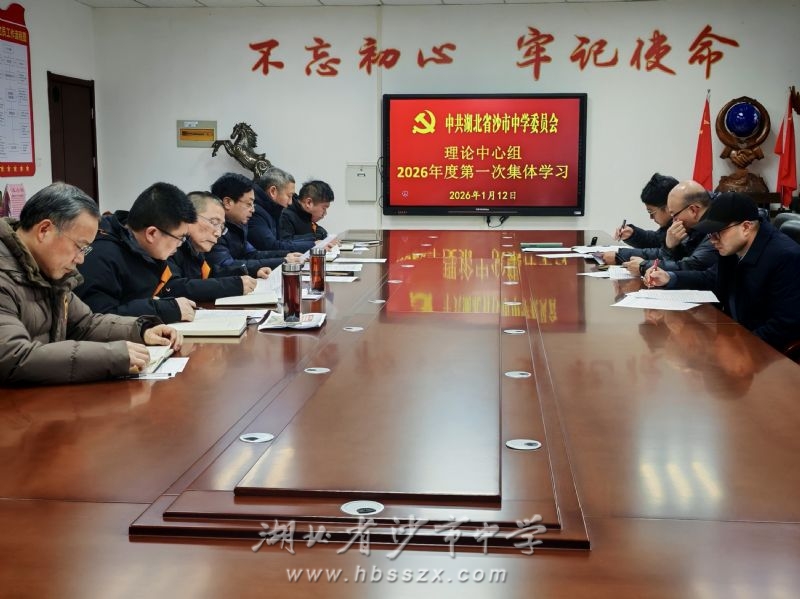 1月12日,沙市中学党委理论学习中心组开展2026年第一次集体学习,专题学习2026年全国教育工作会议精神。校党委副书记、校长徐善慧主持会议,全体中心组成员参会。