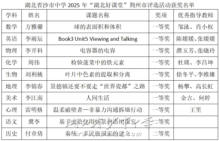 我校多名教师在2025年"湖北好课堂"荆州市评选活动中斩获佳绩