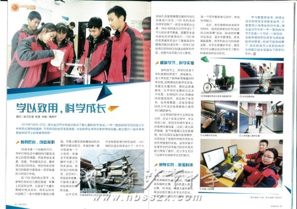 《知识就是力量》杂志2019年第4期(P82-83面)刊登了关于我校第九届科技节的专版,标题是“学以致用、科学成长”,图文并茂地全方位对我校今年初举办的第九届科技节进行了介绍。