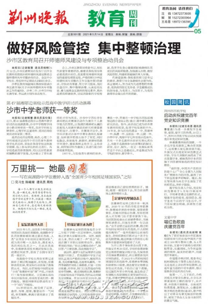 《荆州晚报》2021年5月14日报道我校教师教学比武获一等奖