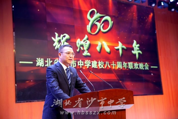 晚会播放了校庆纪录片后,学校党委书记、校长熊礼才发表了热情洋溢的致辞。他并向莅临现场的领导、校友和各界朋友表示欢迎。他回顾了学校80年前在童家花园简易校舍里诞生和艰难办学的经历。他指出,历代习坎励精图治、砥砺前行,用理想和信念诠释了“上善若水,自强不息”的习坎精神,创造了辉煌灿烂的成绩。他向所有为创造与创新、守护与守望习坎教育而贡献过智慧的人们致以最崇高的敬意;他怀念在荆楚大地上播下“习坎”种子的汪奠基先生,怀念抛弃繁华、默默坚守、用责任与担当换来满园桃李芬芳的老师们;怀念一批又一批用智慧和汗水谱写了母校历史华丽的乐章的校友们。他希望今天的每个习坎人,都能秉承习坎精神,追求真理,及时奋发,心怀报国之志、苦练报国之能,让沙市中学的教育薪火在浩瀚星河之中更为灿烂!
