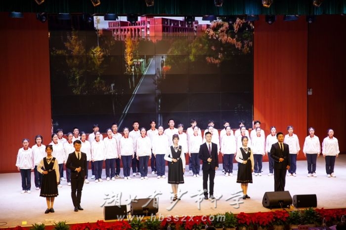 晚会最后,现场所有人员胸怀激荡,豪情满怀,一齐唱响校歌《习坎,永恒之光 》。今天的沙市中学人,厚载着历史积淀,高扬起时代精神,满怀信心,迎接挑战,向着更高远的天空翱翔!
