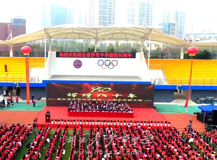 岁月如歌,风雨沧桑,巍巍学府,薪火相传。沙市中学建校80周年庆典,是学校承前启后、继往开来的里程碑,是学校拼搏奋进、再创辉煌的新起点。在新的历史起点上,沙市中学人一定会不忘立德树人初心,牢记为党育人为国育才使命,全面贯彻党的教育方针,发展素质教育,积极推进育人方式改革,进一步强化质量意识,办好人民满意的学校,为创建全国一流名校,而共同奋斗!
