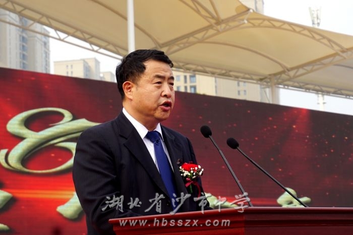 学校党委书记、校长熊礼才致辞。他代表沙市中学3000多名师生员工,向曾在习坎园辛勤耕耘的老领导、老教师致以诚挚的问候,向莅临庆典的领导、嘉宾和各届校友致以热烈的欢迎,向关心、支持学校发展与建设的各级领导、社会各界人士致以衷心的感谢和崇高的敬意。