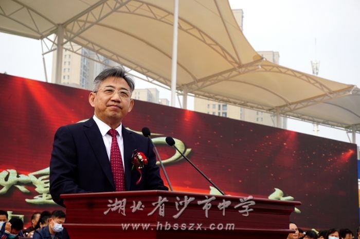 他说,沙市中学征途八十载,是一部以家国情怀铸魂的心灵史,是一部以文化传承培根的精神史,是一部以素质教育立校的奋斗史。他表示,今天,我们接过学校发展的接力棒,担负着建设“人民满意学校”的使命,担负着创建“湖北省一流高中”的历史重任。他希望全校师生继续以习坎精神涵养身心,砥砺自我,自强不息,努力创造荆楚教育的亮丽新篇!