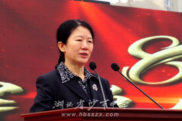 荆州市人民政府副市长孙玉秋致辞,她代表中共荆州市委、市人大、市政府、市政协,向沙市中学80周年华诞表示最热烈的祝贺。她说,荆州是历史文化名城、科教资源大市,素有崇文重教的优良传统。沙市中学承载了兴校办学、培育英才、造福乡梓、报效国家的历史传统。沙市中学在教育教学改革、推进素质教育、创新学校办学与发展模式等方面,都做了许多卓有成效的探索,取得了丰硕的成果,形成了鲜明的办学特色,赢得了社会和家长的广泛赞誉。她希望沙市中学以80周年校庆为新的起点,锐意创新,不断更新教学理念、创新办学模式、加强师资建设、提高办学质量,精心培育“品牌学科、品牌教师、品牌课堂”,打造全国一流名校,为荆州振兴崛起提供人才保障。