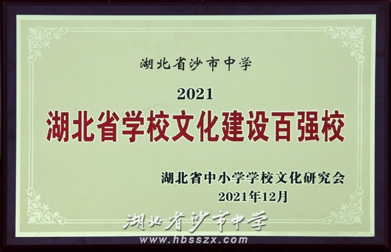多年来,沙市中学的文化建设,不仅以物质的形式外显于世,更以品德和人格的方式印刻在广大师生的骨子里,渗透并铺展在学校的每个角落。借此获评“百强校”之契机,学校将进一步加强文化建设,努力把学校建设成为校园环境优美、教育理念先进、育人机制完善、文化氛围浓厚、人际关系和谐的一流学校。