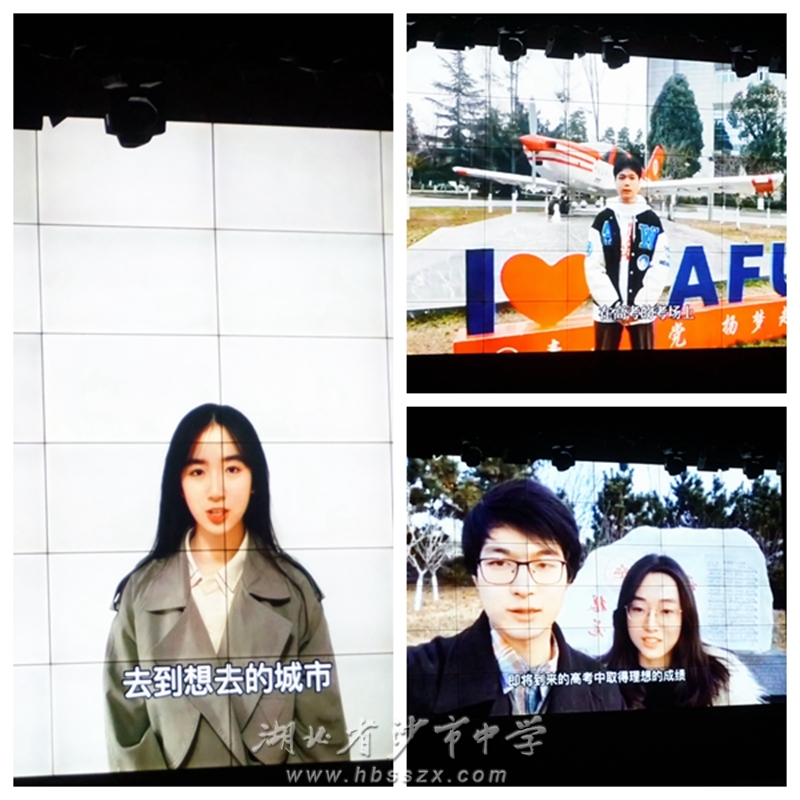 在各地求学的师兄师姐通过视频为高三学子送上了暖心的祝福与鼓励,祝愿2022届高三同学们高考加油,乘风破浪,扬帆起航,祝愿2022年沙市中学高考必胜,再创辉煌。