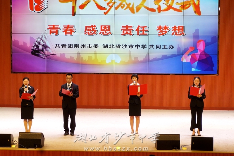 5月4日,沙市中学在艺术报告厅隆重举行了以“成长、感恩、责任、梦想”为主题的2019级高三成人仪式,学校领导、家长代表和高三年级全体师生参加了庆典。